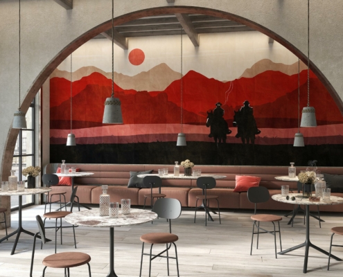 Every project can be fully customized, from graphic design and dimensions to finishes and color palettes, thanks to an in-house creative team capable of developing completely original visuals on request.